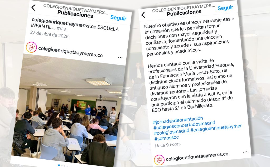 El miércoles 11 de marzo, el Colegio Enriqueta Aymer de Madrid, con motivo de las Jornadas de Orientación que celebra todos los años, ha solicitado a nuestra fundación el taller titulado PRIMEROS PASOS EN EL MUNDO LABORAL, taller que ya se impartió el 16 de enero para otro grupo de 1º de Bachillerato de 25 alumnos del mismo centro.